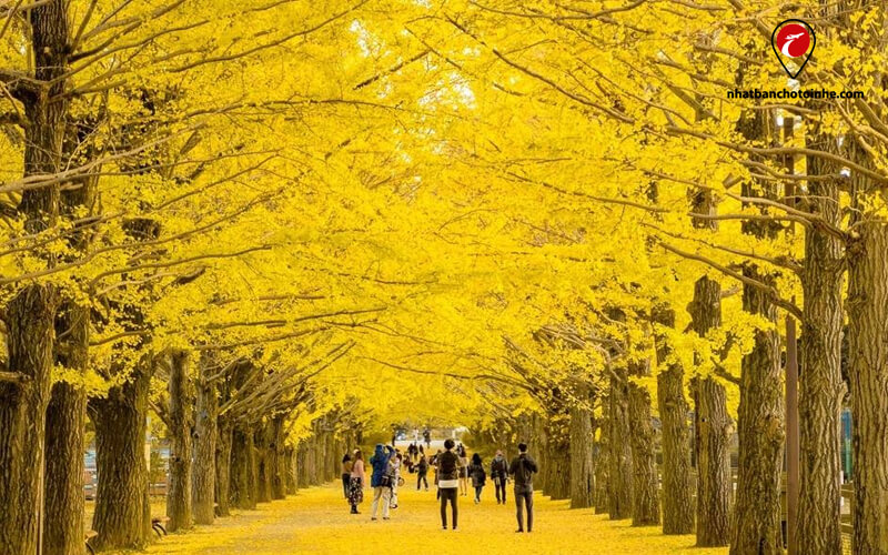 Chủ nhật và các ngày lễ là thời điểm tuyệt vời để ngắm sắc thu ở Nhật Bản ở đây, vì khu vực này cấm tất cả các phương tiện giao thông và trở thành thiên đường dành cho người đi bộ, cho phép bạn thong thả đi dạo qua cảnh tượng vàng này.