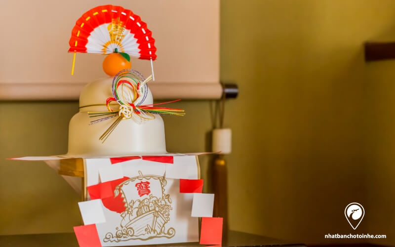 - Kagami mochi: Đây chính là bánh mochi làm bằng gạo nếp để dâng lên Thần Năm mới. Kagamimochi (鏡餅) có 2 tầng lớn nhỏ thể hiện cho mặt trời và mặt trăng.