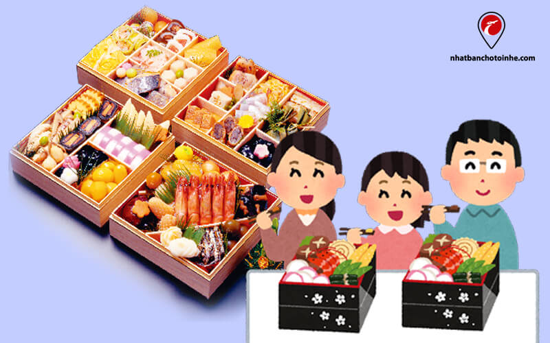 Nếu như Tết Nguyên Đán của Việt Nam có bánh chưng bánh dày. Thì Osechi Ryori là món không thể thiếu vào ngày Tết ở Nhật Bản. Osechi ryori bao gồm các loại thực phẩm truyền thống của Nhật Bản được ăn vào đầu năm mới. Chúng được phục vụ trong một tráp sơn 3 hoặc 4 khay chồng lên nhau để mở ra ăn dần vào ngày đầu năm.